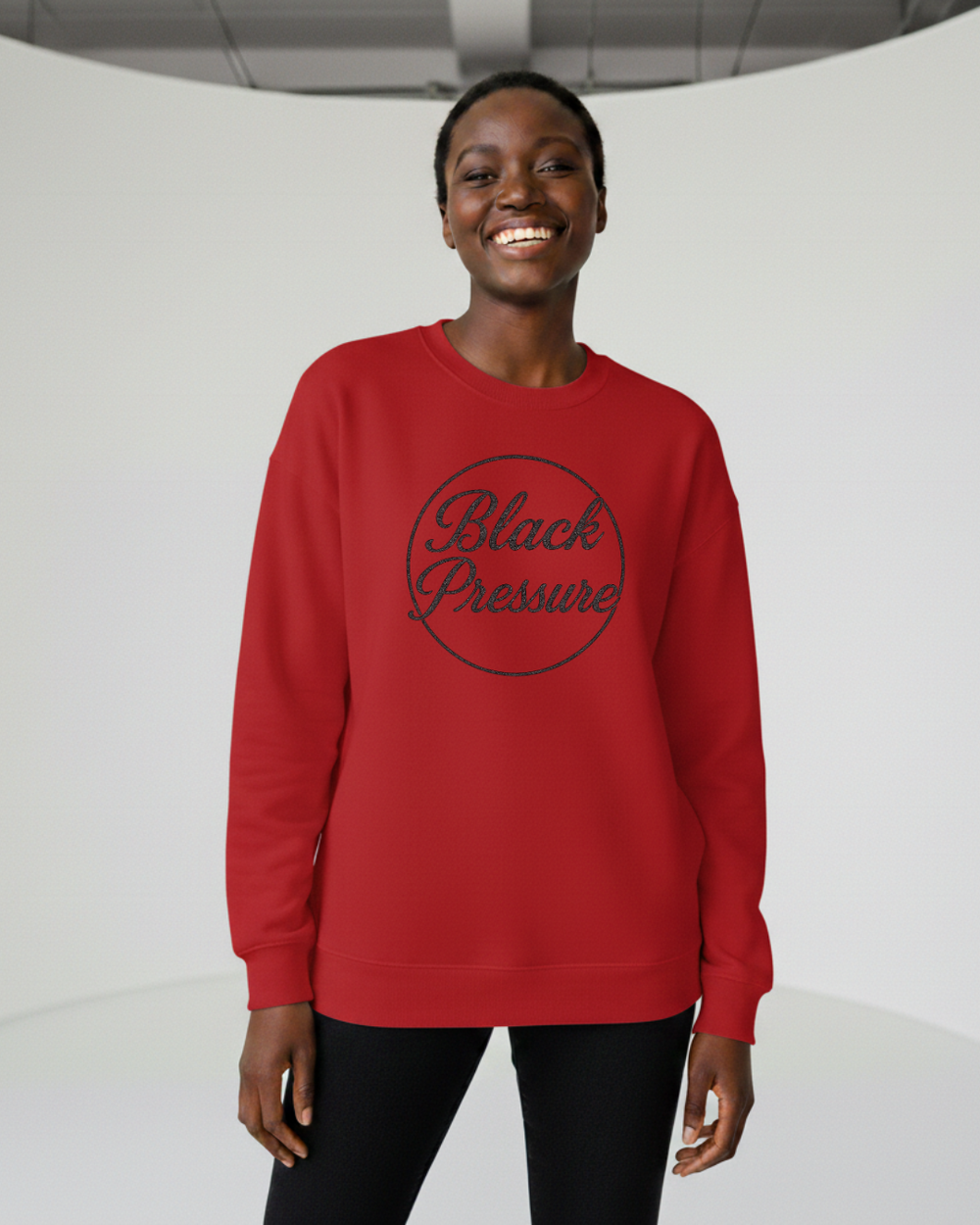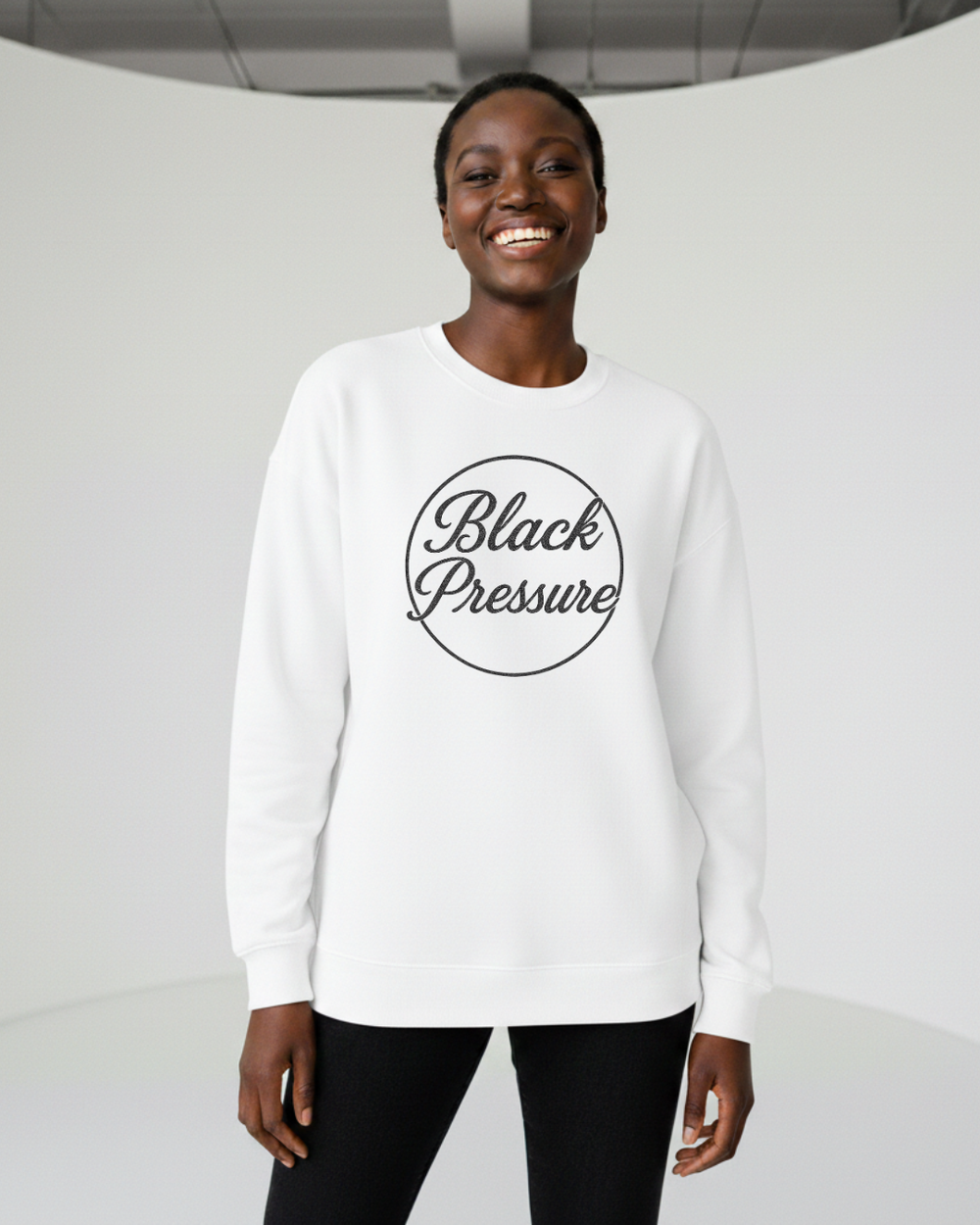 The Black Pressure Sweatshirt blends minimal design with bold streetwear attitude. Featuring a clean circular script graphic, this piece represents strength, focus, and resilience under pressure.